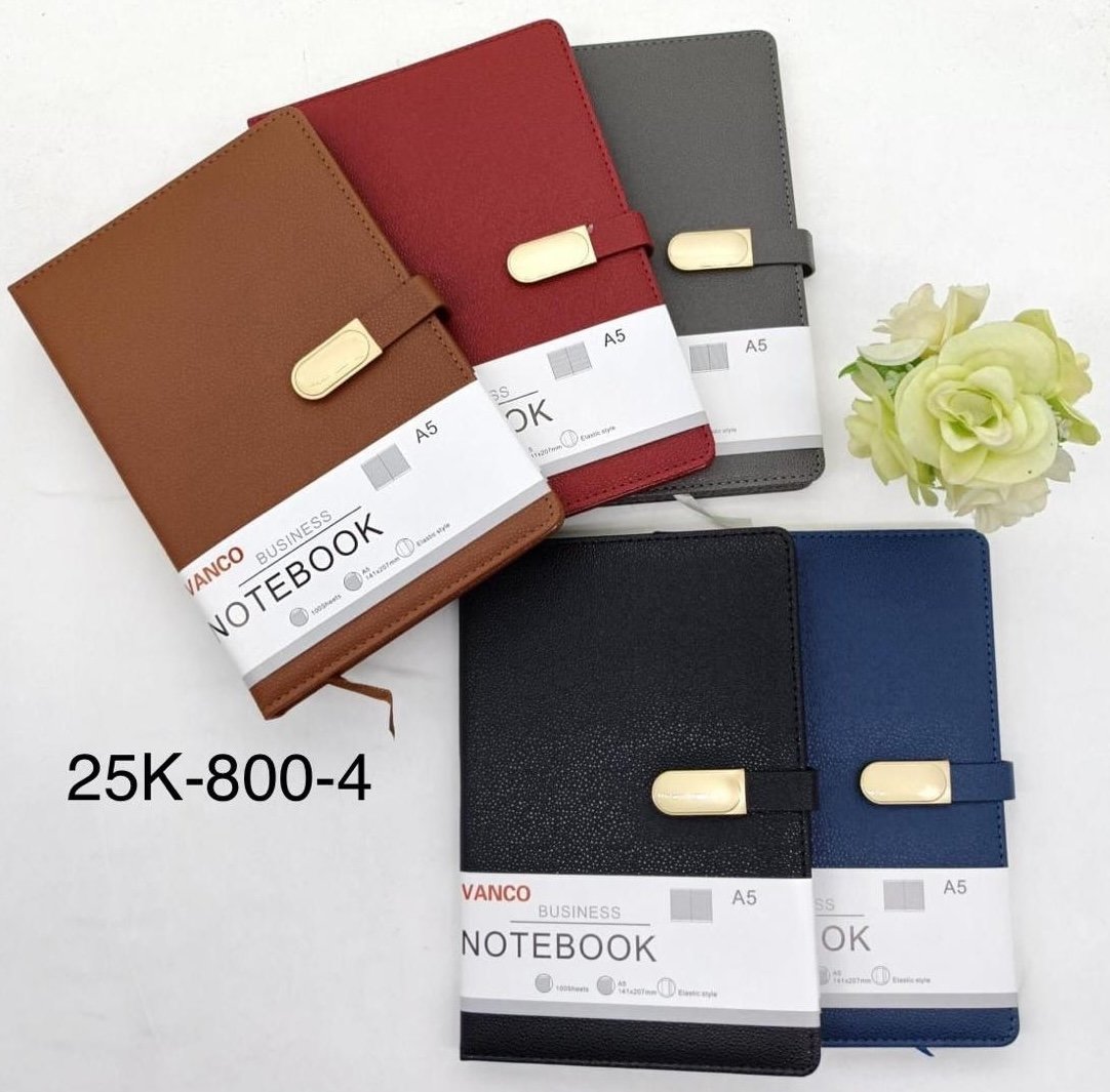 Agenda A5-25K-800-4 menggunakan penutup magnet yang kuat dan praktis. Tampilan profesional, cocok untuk keperluan kantor dan bisnis.