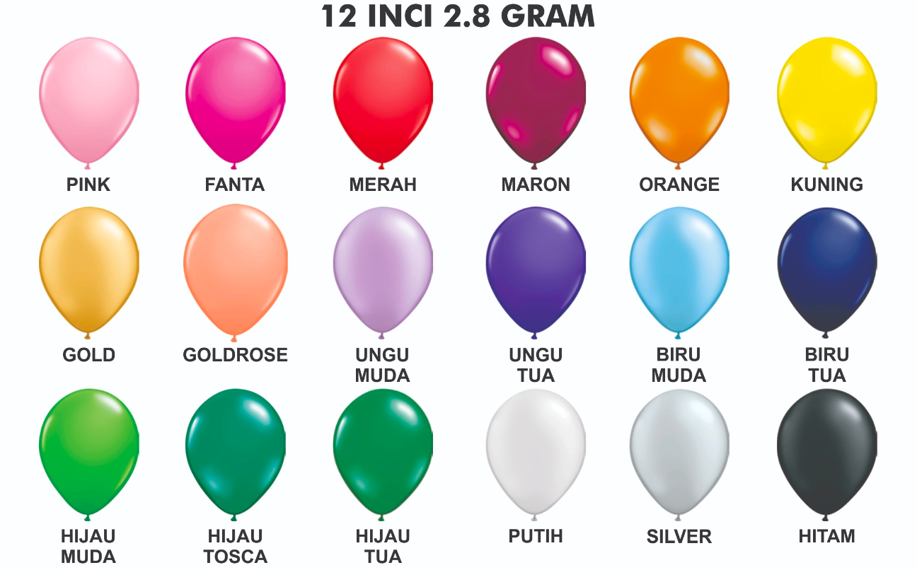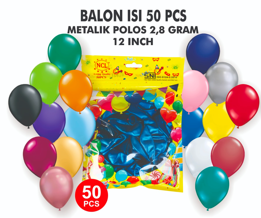 Balon metalik ukuran 12 inch dengan bahan kuat dan warna cerah. Ideal untuk dekorasi event dan pesta.