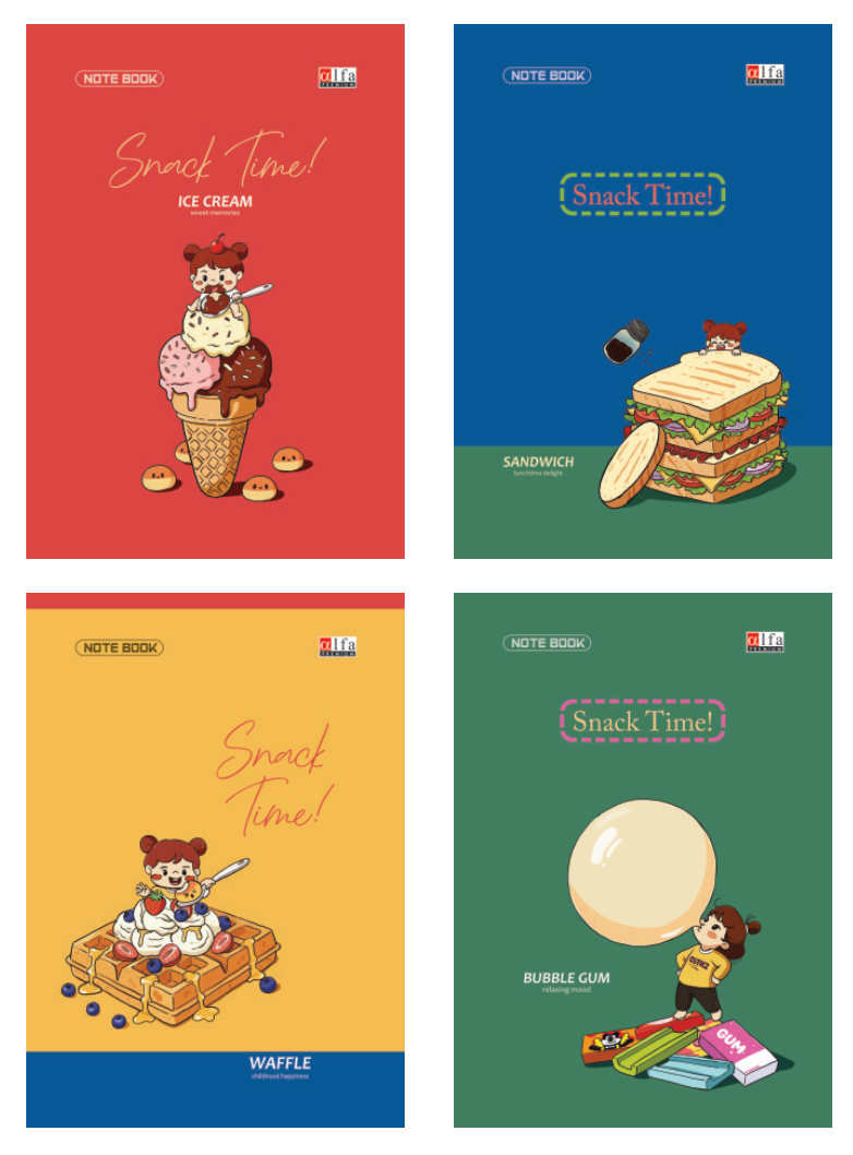 Buku Tulis Boxy 42 Alfa Snack Time hadir dengan desain cover menarik dan penuh warna dalam tema ‘Snack Time.’ Dengan sentuhan artistik yang menceriakan, buku ini cocok untuk semua kalangan usia.