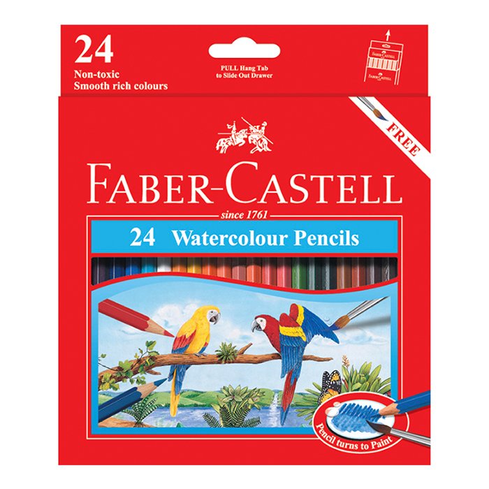 Pensil warna Faber-Castell Parrot isi 24 warna cerah. Cocok untuk pelajar dan hobi menggambar.
