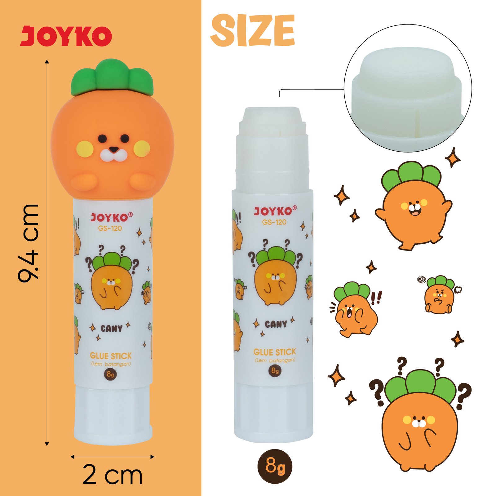 Lem stick Joyko GS-12 dengan karakter Cany & Eggy, menggabungkan fungsi dan desain lucu.