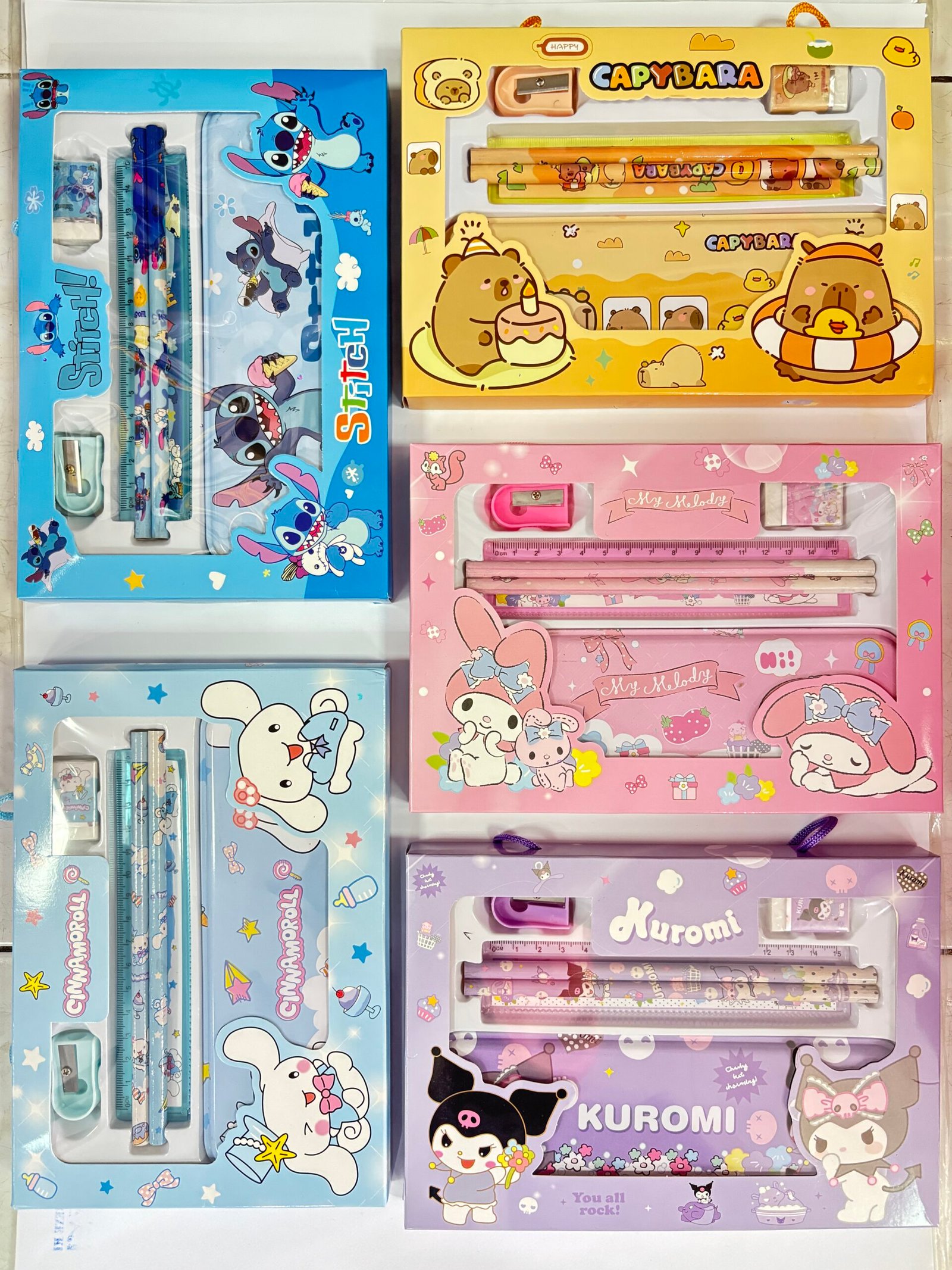 Hadirkan kebahagiaan dalam rutinitas belajar Anda dengan Study Set 107! Set alat tulis ini menampilkan karakter favorit seperti Capybara, Cinnamoroll, Stitch, Kuromi, dan My Melody, semua dirancang khusus dalam gaya imut untuk melengkapi hari Anda. Desainnya yang ceria dan menarik sangat cocok untuk anak-anak maupun dewasa yang mencintai tampilan penuh kepribadian.
